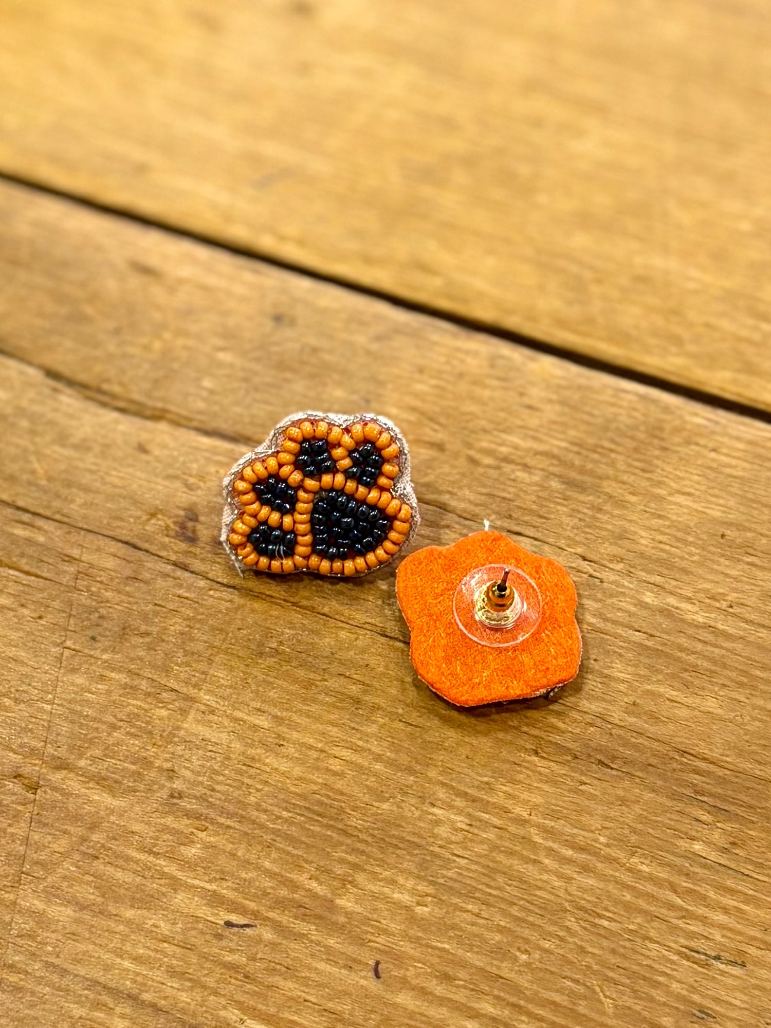 Tiger Paw Stud Earring / Orange + Navy